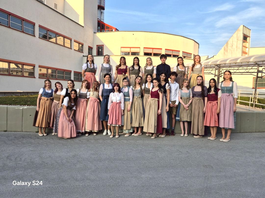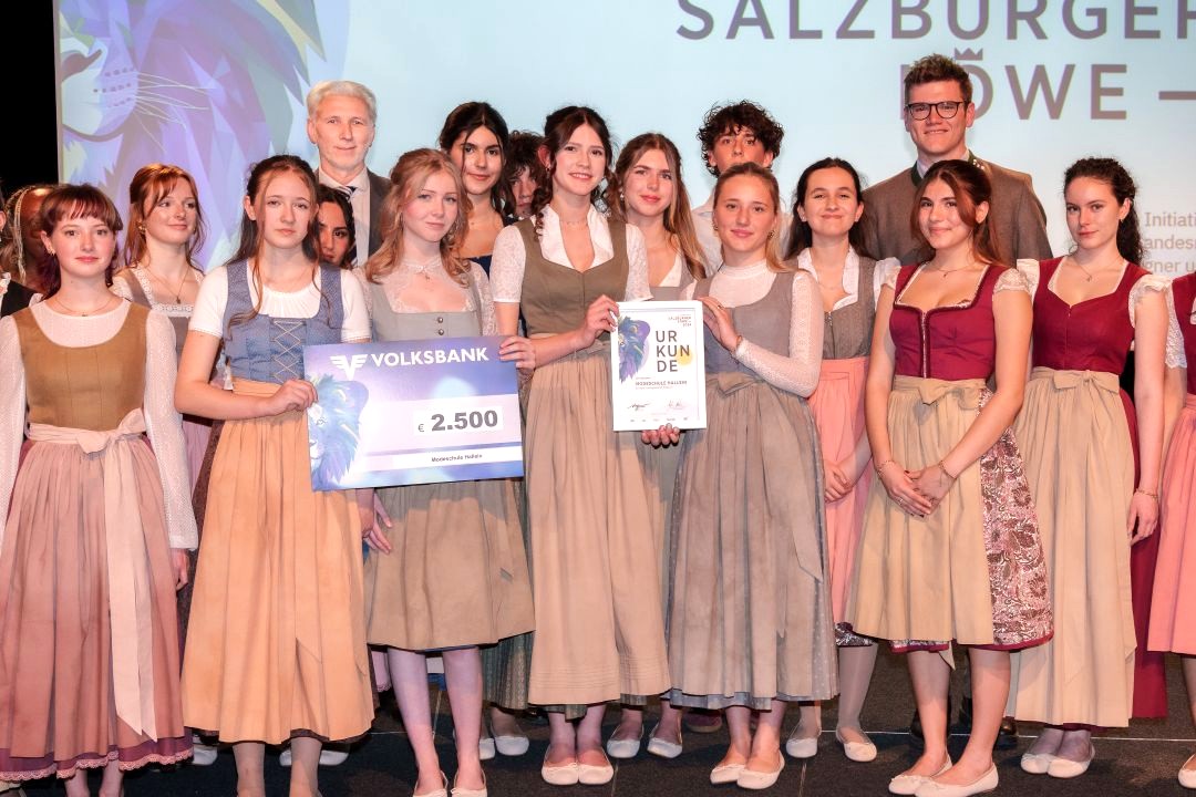 Ihre Dirndl reichten die Schüler*innen beim Salzburger Löwen, einem Preis für Volkskultur ein. Bei der Preisverleihung im ORF Landesstudio erhielt die Klasse den ersten Preis für ihren verantwortungsvollen Umgang mit Ressourcen.